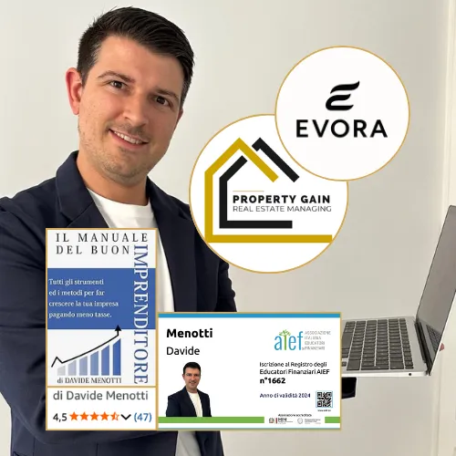 Sono Davide Menotti e sono il responsabile del tuo progetto. Sono anche un Educatore Finanziario AIEF n°1662/2024 e autore de “Il Manuale del Buon Imprenditore”.